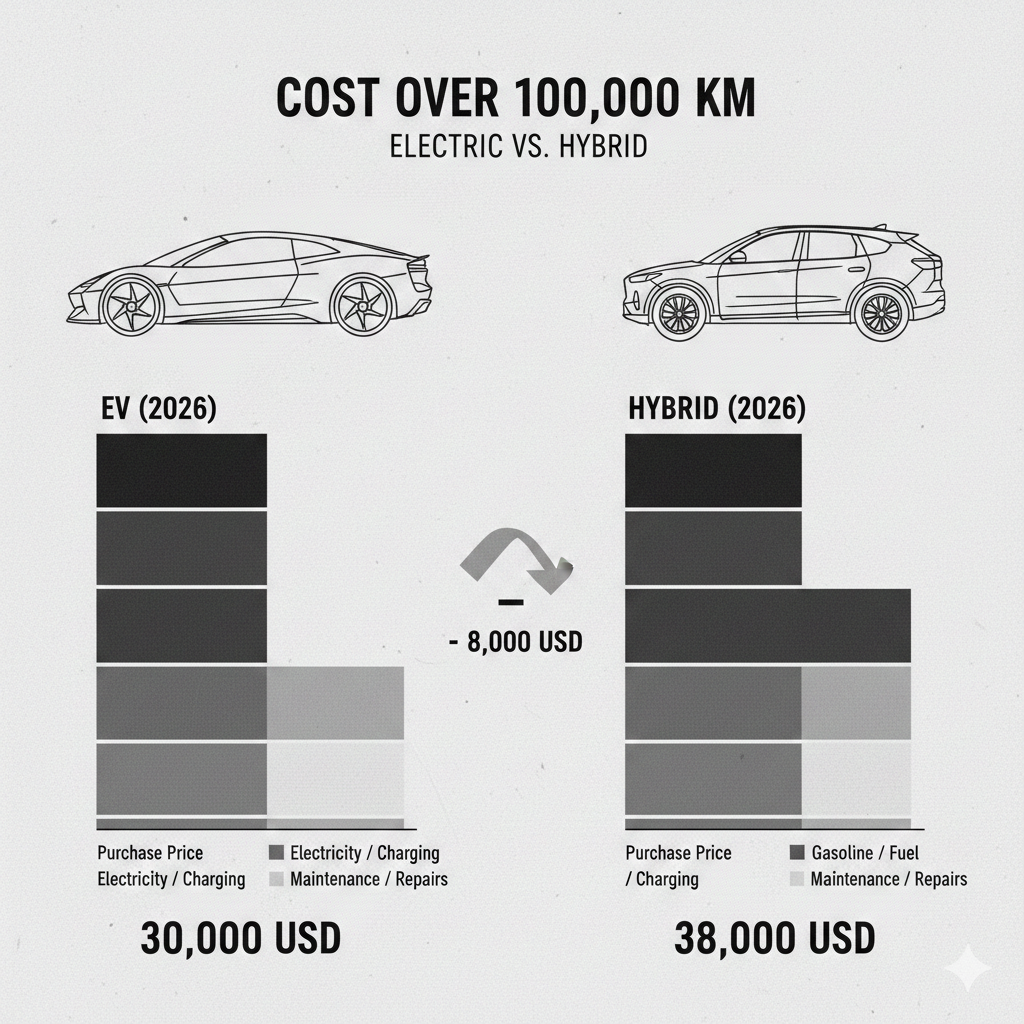 EV vs. Hybrid in 2026: Cost Calculation for 100,000 km